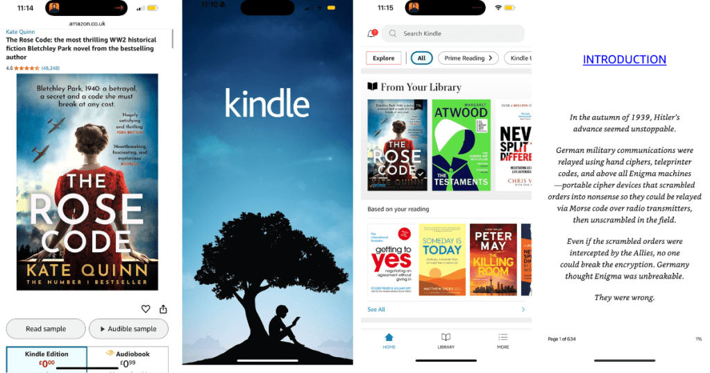 Now, here’s the genius part: Goodreads links directly to Amazon. With a couple of taps, I checked for The Rose Code on Prime Reading (bonus: it’s free with Prime right now!). A few seconds later, it was in my Kindle app, ready to go.